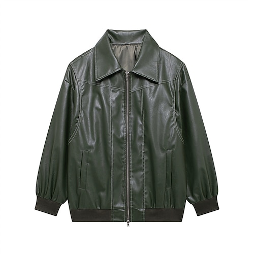 Per donna Giacca in Ecopelle Cappotto Invernale Giacca da Biker Caldo Confortevole Cerniera Tasca Casual Tinta unica Vacanza Streetwear Casuale Abbigliamento quotidiano Regolare Collo ripiegato