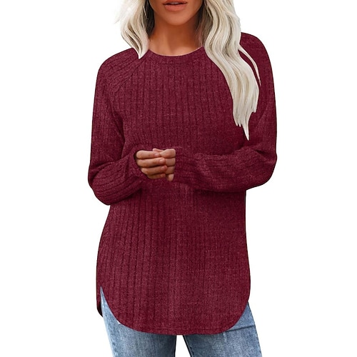 Per donna Blusa Semplice Elegante Casual Manica Lunga Girocollo Top Regolari Quotidiano Uscire Weekend Patchwork Nero Bianco Vino Blu marino Marrone Primavera