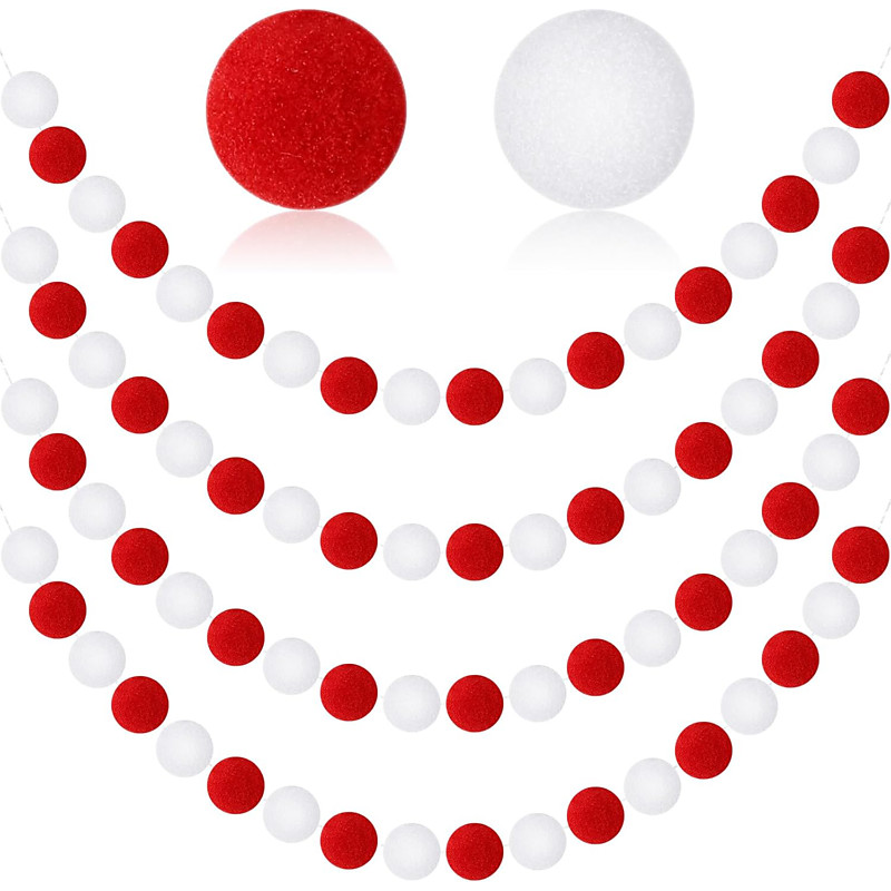 4-Pack Pom Pom Garland, Valentine Felt Ball Garland Decor, Cute Pompom Banner for Room, Wedding, Party, Fireplace Mantel Decoration, 20 Balls, 6.6 Feet Long