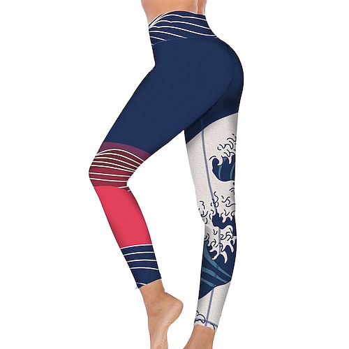 Per donna Pantaloni da yoga Sollevamento glutei Controllo addominale Vita Alta Allenamento in Palestra Corsa Fitness Collant Leggings Floreale Blu scuro Autunno Inverno Gli sport Abbigliamento