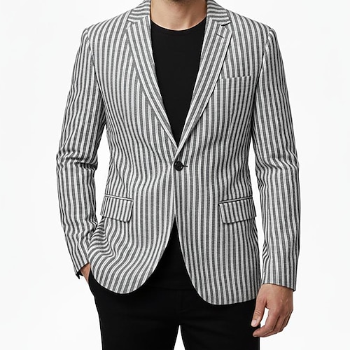 Herren Blazerjacke Arbeit Geschäft Frühling Sommer Herbst Winter Polyester Vertikale Streifen Einreihig Ein-Knopf Blazer Dunkelgrau Hellgrau