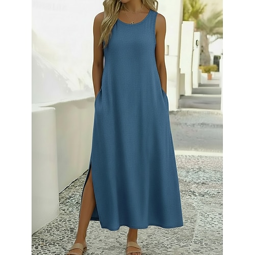 Per donna Abito maxi Abito in lino Vintage Classico Quotidiano Vacanza Vestibilità comoda Colore Puro Senza Maniche Girocollo Blu turchese Arancione Verde Turchese Estate