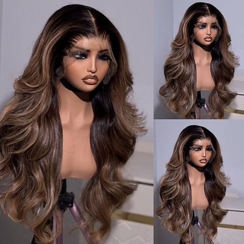 Capelli vergini non trattati 13x4 Pizzo Frontale Parrucca Parte di mezzo Brasiliano Ondulato Multicolore Parrucca 130% 150% Densità dei capelli con i capelli del bambino Capelli evidenziati
