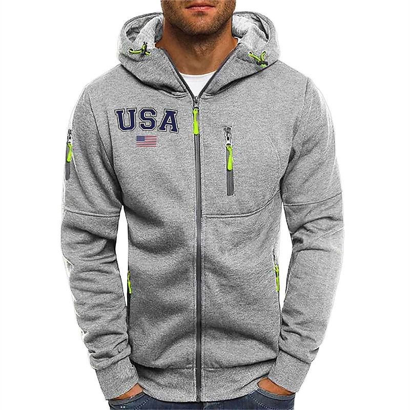 Men's Hoodie Full Zip Hoodie Zip Up Hoodie Blue Black Khaki Dark Gray Gray Hooded American US Flag Zip Up Pocket Casual Daily Sports Outdoor Streetwear Designer Basic Fall Winter Clothing Apparel