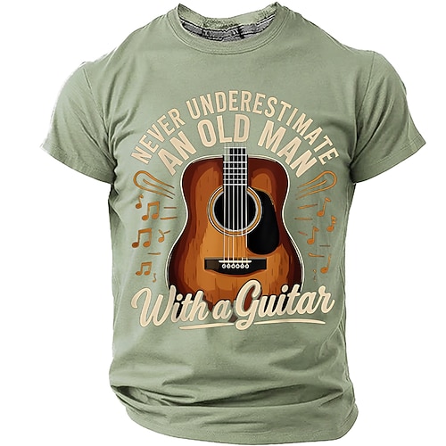 Non sottovalutare mai un vecchio con una chitarra, chitarra acustica, note musicali, t-shirt vintage retrò, grafica, vestibilità regolare, regalo per la festa del papà, abbigliamento firmato, taglie