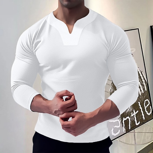 Herren T Shirt T-Shirt Langarmshirt Langarm V Ausschnitt Frühling Herbst Einfach Mode Designer Basic Urlaub Straße Ausgehen Schwarz Weiß Marineblau Top T-Shirt für Herren