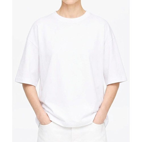 T-Shirt da donna in cotone 100% a tinta unita moda base classica a maniche corte girocollo tops regolari quotidiane sport uscita Nero Bianco Vino Grigio Estate Primavera
