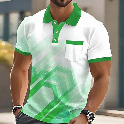 Herren Geometrisch Waffel-Poloshirts Golfshirt Kurzarm Polo-Shirts Hemden mit Kragen Business-Casual Urlaubskleidung Formelle Kleidung Festivalkleidung 3D-Druck Knöpfe Blau Armeegrün Rote