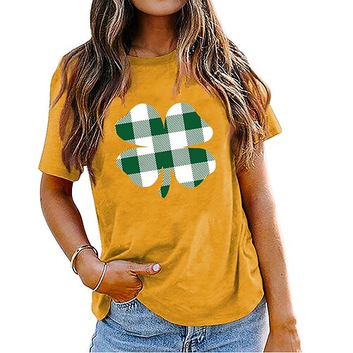 Giorno di San Patrizio Festa di San Patrizio Per donna Maglietta Trifoglio Moda Manica Corta Girocollo Top Regolari Casuale Giorno di San Patrizio Stampato Nero Bianco Giallo Rosa Verde Primavera