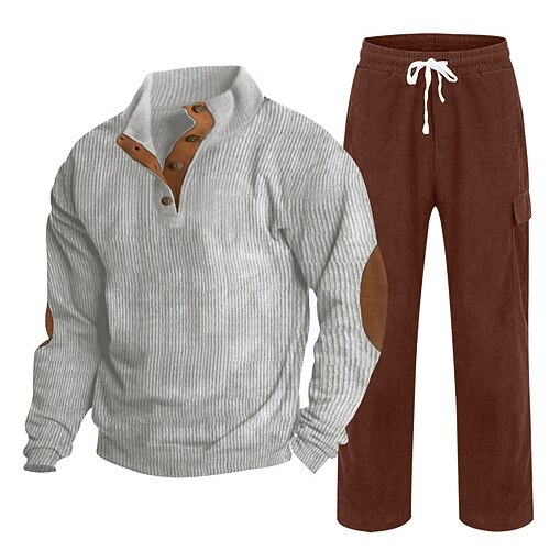Per uomo Maglia Tuta da Ginnastica Set di abiti Collo alla coreana All'aperto Quotidiano Sportivo Coulisse Tasca Blocco di colori Nero Blu marino Marrone Poliestere Velluto a coste Abbigliamento