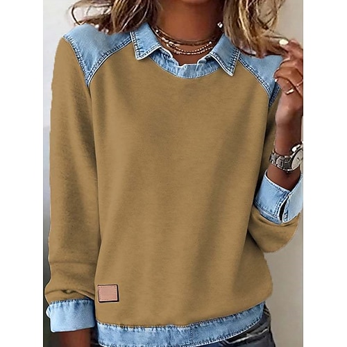 Per donna Blusa Blocco di colori Elegante Casual Manica Lunga Colletto a Camicia Top Regolari Quotidiano Patchwork Nero Bianco Giallo Rosso Arancione Primavera Autunno Inverno