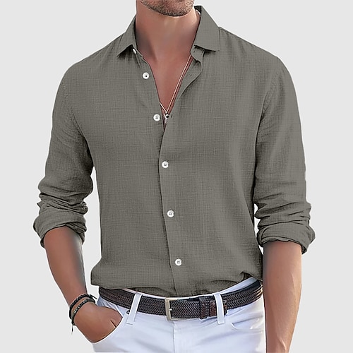 Per uomo Camicia di cotone Nero Bianco Kaki Grigio scuro Azzurro Manica Lunga Semplice Bavero Vacanza Camicia hawaiana Bottonato Abbigliamento 100% Cotone Moda Casual Confortevole