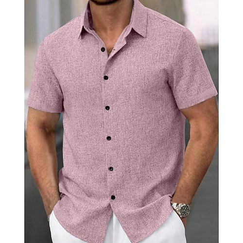 Per uomo Camicia Camicia Estiva Camicia casual Camicia con Bottoni Camicia di cotone Semplice Spiaggia Vacanza Nero Rosa Azzurro cielo Viola Manica Corta Collo ripiegato Estate Abbigliamento