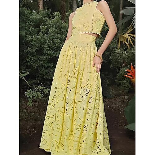 Per donna Set di gonne Senza Maniche Girocollo Semplice Arricciato Foro Elegante Moda Streetwear Casuale Quotidiano All'aperto Blu Nero Bianco Estate Vestibilità regolare
