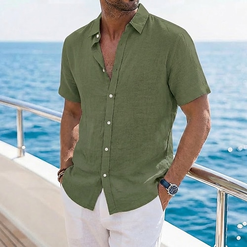Per uomo Camicia di lino Camicia Estiva Abbigliamento da spiaggia Camicia con Bottoni Semplice Casuale Vacanza Nero Bianco Rosa Verde Manica Corta Collo ripiegato Estate Abbigliamento Puro
