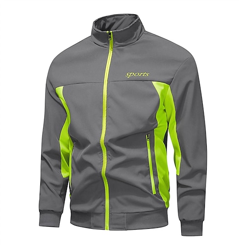 Per uomo Giacca da Esterno Giacca a vento Giacca da Escursionismo Vacanza Quotidiano Traspirante Tasca Splice Primavera Autunno Blocco di colori Moda Classico Collo alla coreana Regolare Nero Grigio