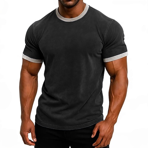 Per uomo Maglietta Manica Corta Maniche Corte Girocollo Scollo a V Estate Tutte le stagioni Tinta unica Vintage Moda Designer Blocco di colore Vacanza Streetwear Casuale Nero Blu Verde chiaro