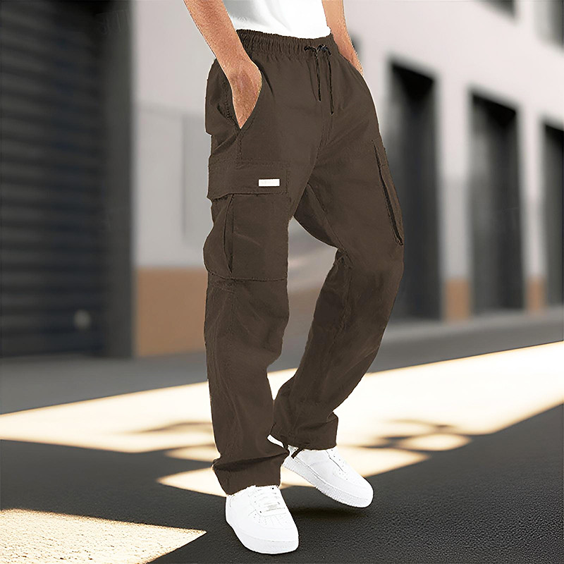 Men's Cargo Pants Trousers Drawstring Elastic Waist Multi Pocket Plain Wearable Outdoor Daily Camping Hiking Fashion Classic Dark Brown Lake blue