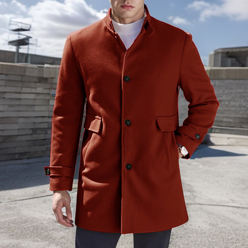 Men's Peacoat Trench Coat Vacation Daily Fall Winter Polyester Thermal Warm Windproof Outerwear Clothing Apparel Fashion Classic Plain Pocket Lapel Single Breasted