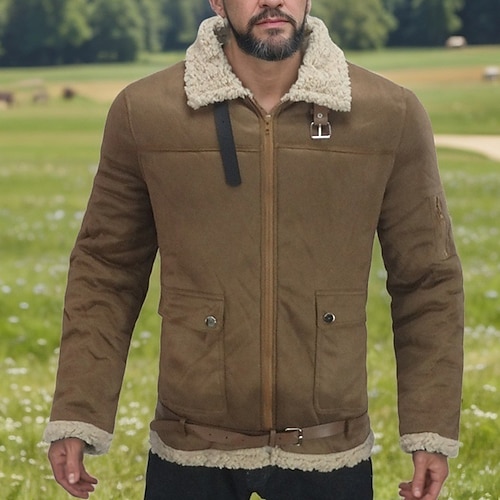 Per uomo Giacca in finta pelle scamosciata Giacca Invernale Giacca Sherpa Vacanza Quotidiano Calore Termico Tasca Pile Autunno Inverno Semplice Moda Streetwear Bavero Regolare Nero Marrone Giacca