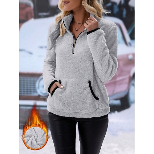 Per donna Felpa con cappuccio Semplice Streetwear Casual Pile Sherpa Manica Lunga Con Cappuccio Top Regolari Streetwear Ferie Coulisse Nero Bianco Rosso Viola Beige Autunno Inverno