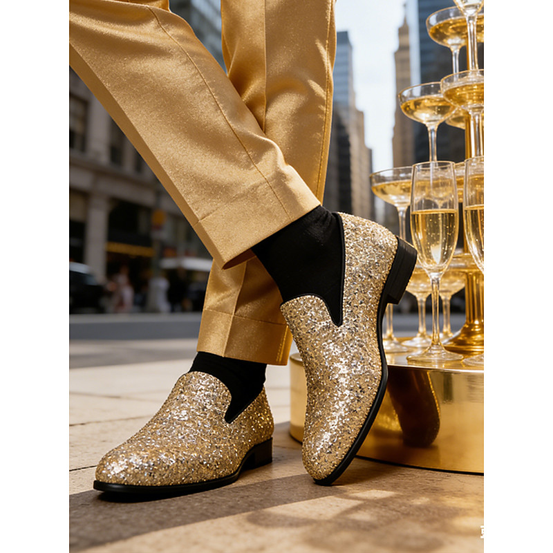 Men's Gold Sparkle Dress Shoes – Premium Design for Formal Weddings and Glamorous Events