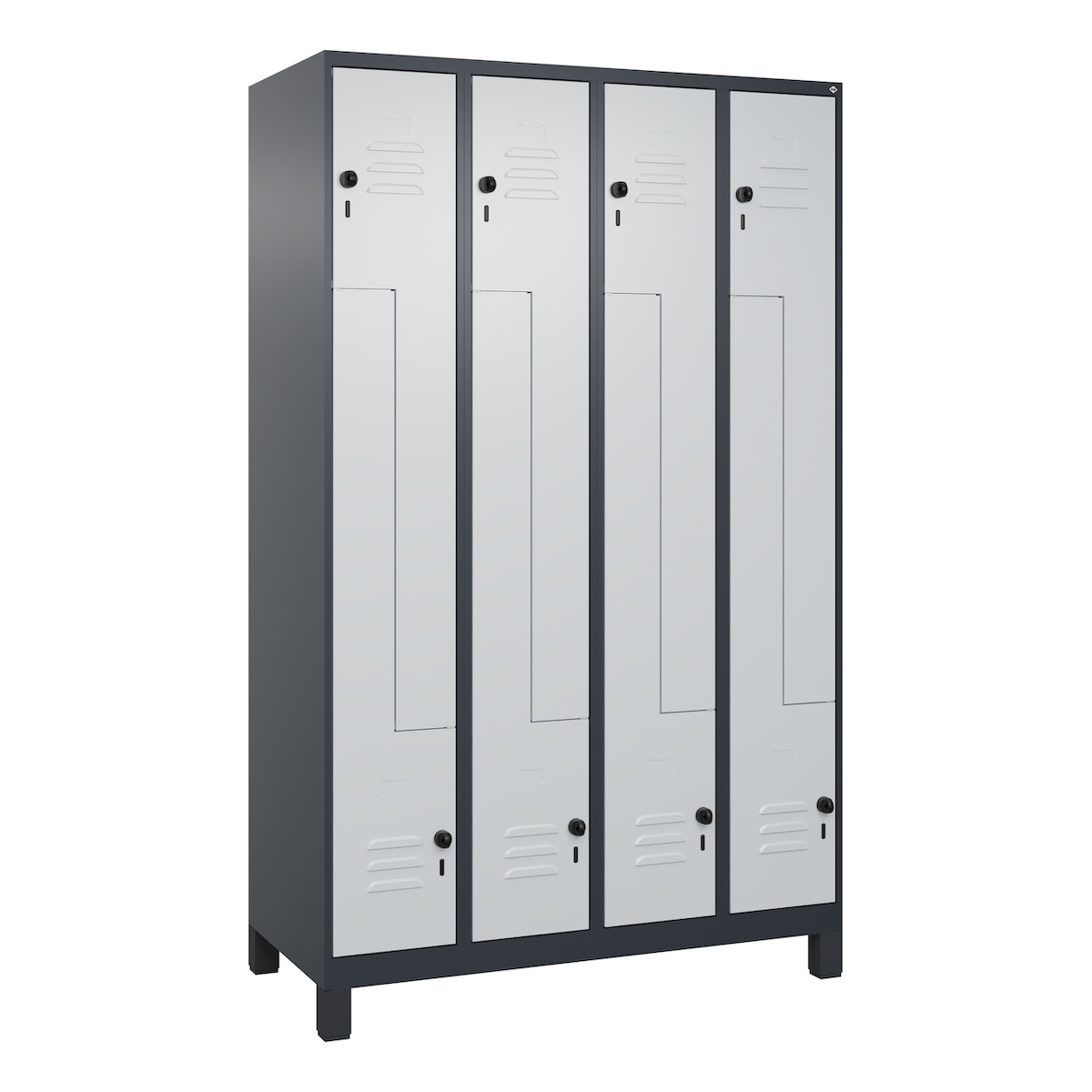 C+P Z-Spind Classic PLUS, Füßen, 8 Abteile, HxBxT 195x120x50cm, Sicherheitsdrehriegel, Anthrazit/Hellgrau von PROREGAL