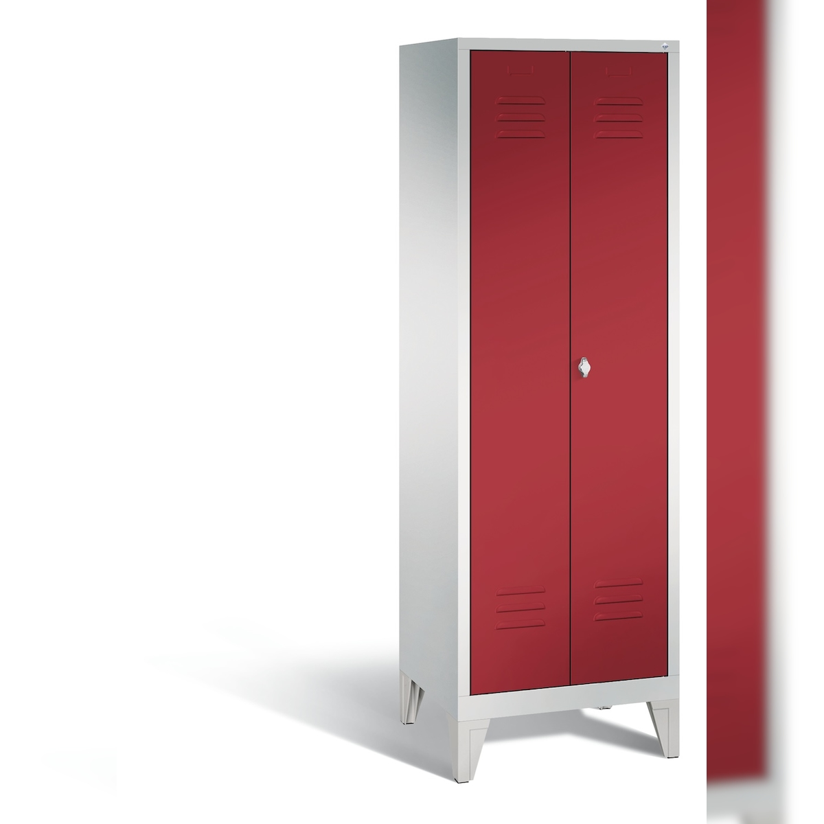 C+P Spind Classic mit Füßen | 2 Abteile mit verkürzte Mitteltrennwand & 4 Fachböden | HxBxT 185x30x50cm | Lichtgrau/Rubinrot von PROREGAL