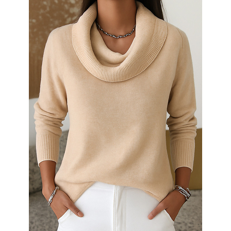Women's Sweater Elegant Fashion Daily Cowl Cold Shoulder Long Sleeve Regular Tops Knit Pink Beige Fall Winter