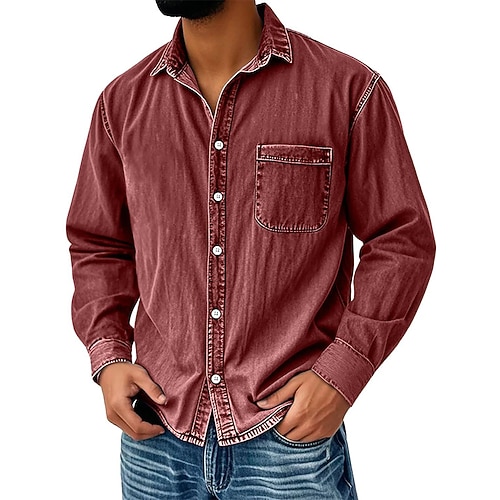 Per uomo Camicia Camicia casual Camicia vintage Camicia con Bottoni Nero Verde chiaro Vino Blu marino Blu Manica Lunga Semplice Bavero Uscire Abbigliamento casual alla moda Tasca Abbigliamento Moda