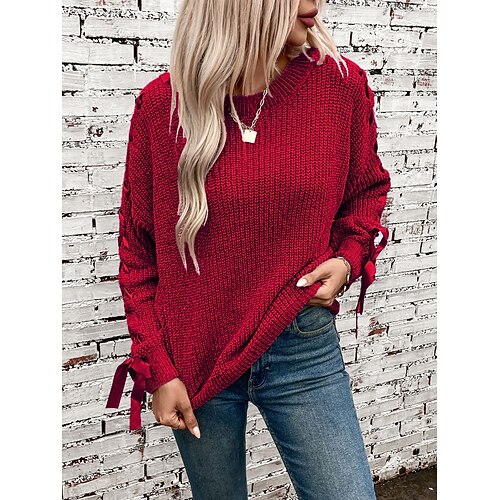 Per donna Felpa Casual Morbido Colore Puro A Coste Girocollo Lavorato a maglia Manica Lunga Top Regolari Maglia All'aperto Quotidiano Weekend Rosa Vino Autunno Inverno