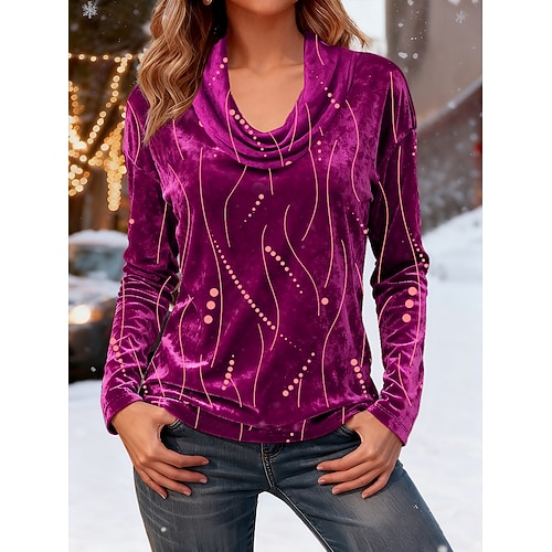 Per donna Tunica Maglietta Grafico Geometria Elegante Vintage Moda Manica Lunga Scollo a Cascata Top Regolari Quotidiano Uscire Weekend Stampato A Strati Vino Blu Reale Viola Oro Verde Autunno