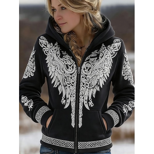 Per donna Felpe con cappuccio Grafico Geometrico Moda Western Casual Manica Lunga Con Cappuccio Top Regolari Casuale Streetwear Abbigliamento Quotidiano Cerniera Tasca Stampato Nero Vino Verde