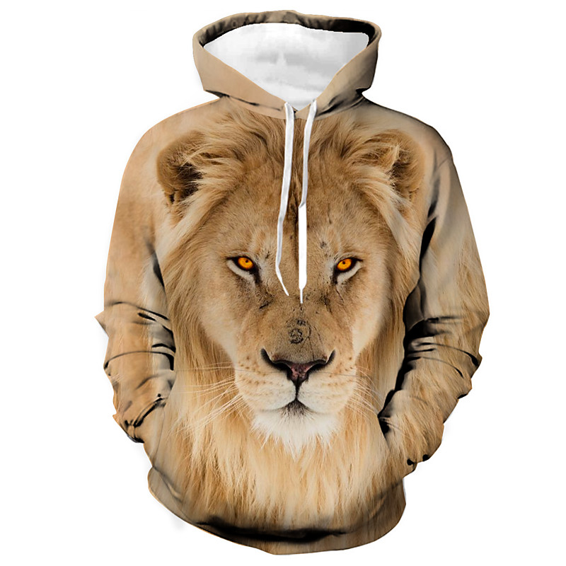 Men's Lion Tiger Hoodie Jacket Sweatshirt Fantasy All Over Print Zip Vacation Going out Streetwear Brown Brown 2 Brown 3 Zipper Fall Winter Designer S M L XL XXL XXXL