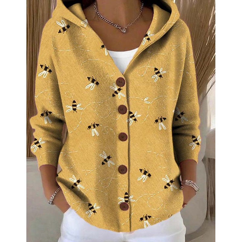 Women's Sweaters Warm Print Casual Floral Casual Regular Hooded Regular Fit Long Sleeve Outerwear Light Yellow Yellow Pink Fall Winter