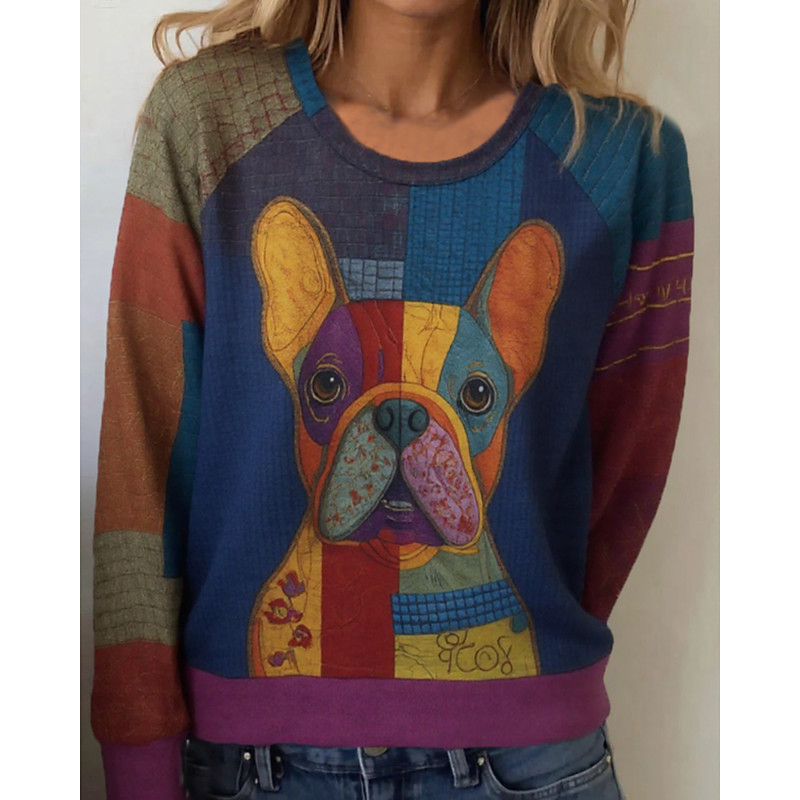 Women's Sweatshirts Graphic Animal Casual Long Sleeve Crew Neck Regular Tops Street Dailywear Print Blue Brown Green Fall Winter
