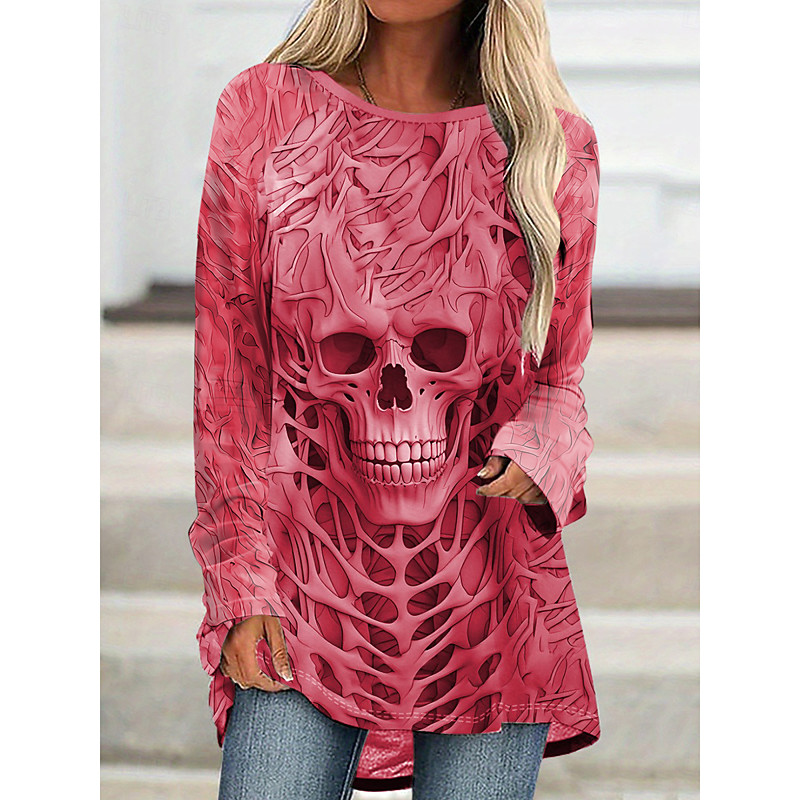 Women's T Shirt Skulls Graphic Vintage Stylish Casual Long Sleeve Crew Neck Long Tops Daily Print Black Gray Spring Fall