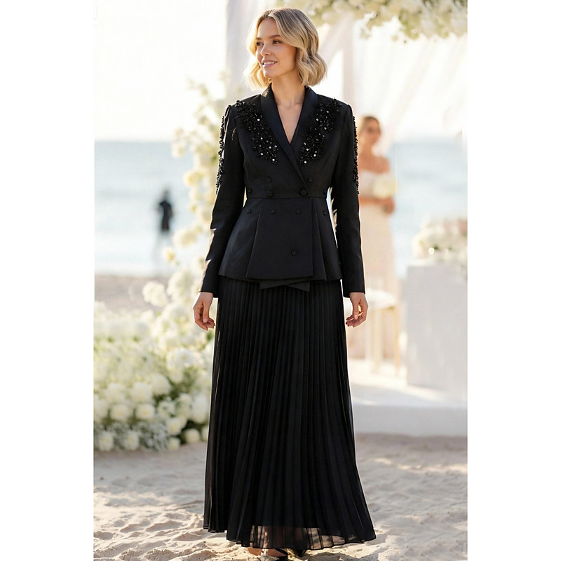Women's Blazer Dress Two Piece A-Line Cocktail Office Work Elegant Long Sleeve Floor Length Ankle Length Notch Turndown Double Breasted