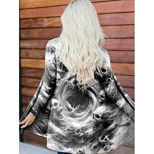 Damen Mantel Leicht Bequem Druck Vintage Mode Künstlerisch Lässig Schädel Lässig Lange Kragenlose Reguläre Passform Langarm Oberbekleidung Schwarz Weiß Orange Frühling Herbst