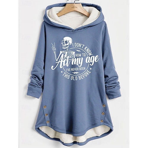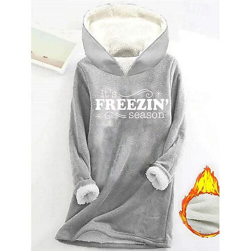 Damen Kapuzenpullover Grafik Buchstabe Warm Lässig Flauschig Langarm Mit Kapuze Lange Oberteile Lässig Sport Druck Rosa Blau Grau Herbst Winter