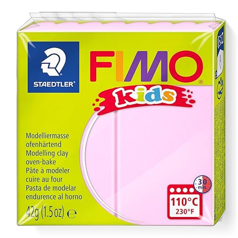 FIMO kids hell perlig rosa Ofenknete, 42g Block, portioniert, hell perlig rosa