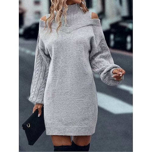 San Valentino Per donna Mini Abito Tubino Abito a spalle scoperte Elegante Festa cocktail All'aperto Feste Ospite di nozze Vestibilità regolare Tinta unica Manica Lunga Spallina Nero Rosso Beige