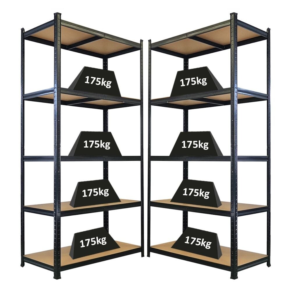 PROREGAL Mega Deal 2x Profi Schwerlastregal Rhino | HxBxT 180x200x60cm | 4 Melamin-Ebenen 16mm | Fachlast 500kg | Schwarz