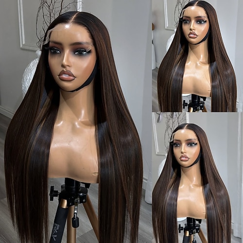 Capelli umani 5x5 Chiusura 13x4 Fronte in Pizzo Parrucca Riga centrale Capelli brasiliani Liscio Marrone Naturale Parrucca 150% 180% Densità dei capelli con Capelli di Bambino Capelli schiariti