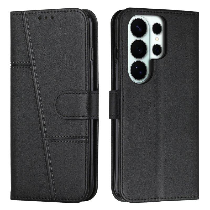 Samsung Galaxy S26 Fodral Äkta Läder Splicing Stitching - Svart