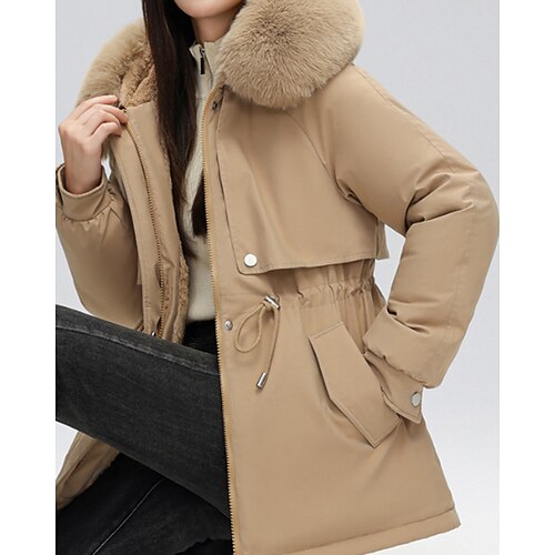Per donna Giacca imbottita Giacca in Pile Cappotto in Pelliccia Sintetica Caldo Confortevole Cerniera Bottoni Collo in Pelliccia Casual Semplice Vacanza Streetwear Abbigliamento quotidiano Uscire