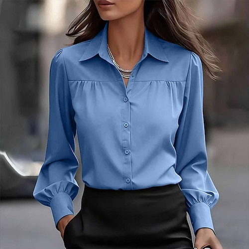 Per donna Top estivi Blusa Top Eleganti Tinta unica Semplice Elegante Vintage Signore Manica Lunga Manica a Lanterna Colletto a Camicia Top Regolari Quotidiano Lavoro Ferie Arricciato Patchwork