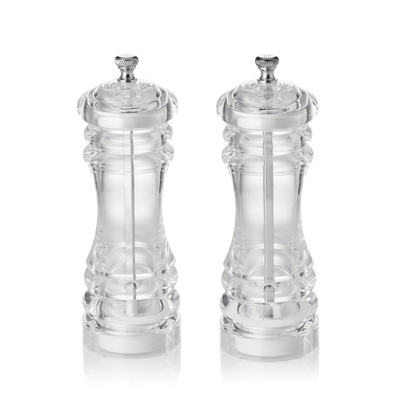 3x Salz- und Pfeffermühlen Set Acryl, 15 cm Classic Mill Keramikmahlwerk
