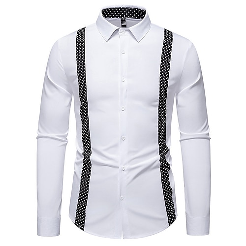 Per uomo Camicia Camicia elegante Camicia con Bottoni A Pois Matrimonio Feste Nero Bianco Manica Lunga Bavero Primavera Autunno Abbigliamento Patchwork