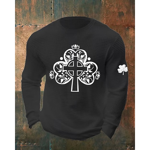 Giorno di San Patrizio San Patrizio Festa di San Patrizio Per uomo Trifoglio Camicia a nido d'ape Maglietta Manica Lunga maglietta Girocollo Camicia Sport Moda Classico Quotidiano Vacanza Feste Nero